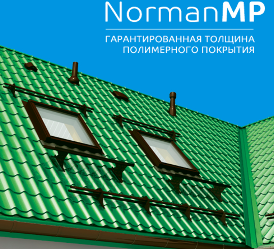 Металлочерепица NormanMP -Одно из самых популярных и экономичных покрытий с гладкой глянцевой поверхностью, подходящее для использования в любых климатических условиях.